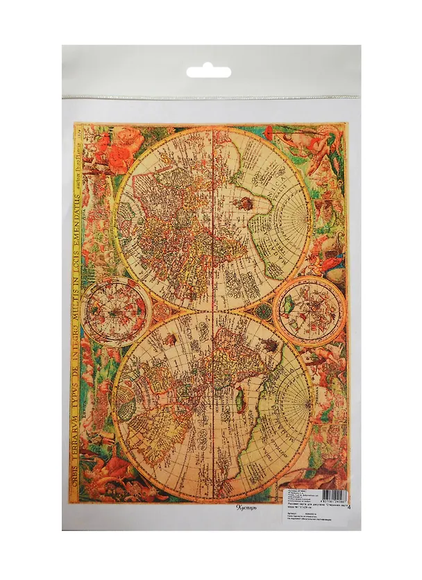 Рисовая карта для декупажа "Старинная карта мира №1" 21*29см