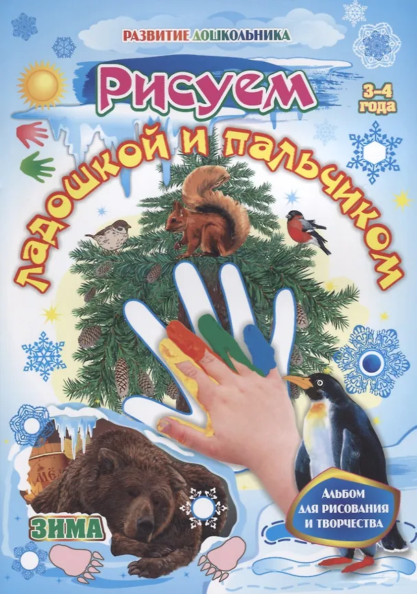 Рисуем ладошкой и пальчиком. Зима. Альбом для рисования и творчества. 3-4 года