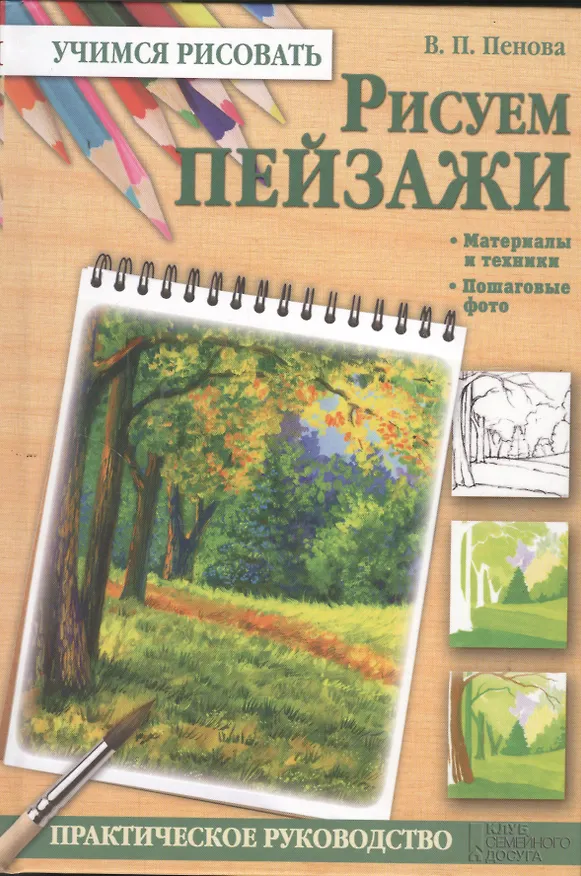 Рисуем пейзажи. Валентина Пенова учит рисовать пейзажи в самых разных техниках. Просто и понятно. Почти с пошаговыми инструкциями и цветными схемами. Вполне можно кое что освоить самостоятельно, если серьезно по ней заниматься. В книге рассматриваются различные технические приемы, чтобы добиться реалистичности пейзажа, придать работе завершенный и профессиональный вид. Рекомендую тем, кто решил начать заниматься рисованием!