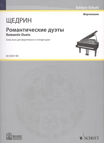 «Романтические дуэты», семь пьес для фортепиано в четыре руки, написаны Р. Щедриным в 2007 году. Произведение посвящено Мартину Энгстроему — основателю международного музыкального фестиваля в швейцарском Вербье. Премьера сочинения состоялась 28 июля 2007 года в Вербье. Исполнители: Роланд Понтинен и Родион Щедрин. Издание адресовано профессиональным музыкантам, студентам и преподавателям средних и высших музыкальных учебных заведений. Книга издана по лицензии издательства Schott Music GmbH&Co.KG (Германия). В России публикуется впервые.