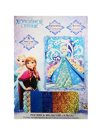Роспись фольгой "Эльза" В наборе: цветная картинка, фольга 5 цветов, самоклеящиеся стразики (3+) (Disney)