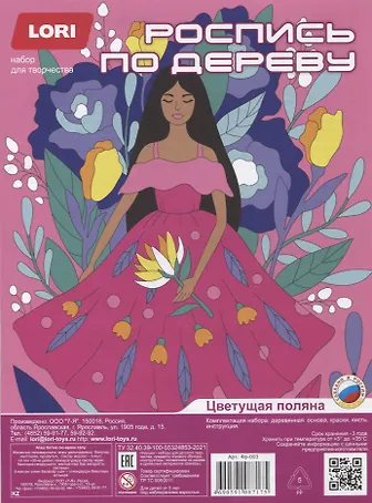 Комплектация набора: деревянная основа, краски, кисть, инструкция.