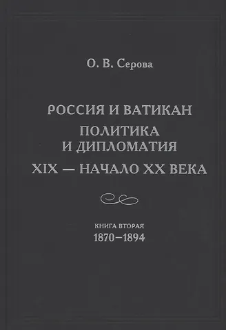 Хронологические рамки второй книги: 1870 г., когда началась новая эпоха в жизни Святого Престола после утраты папой светской власти, и 1894 г., когда состоялось восстановление дипломатических отношений между Россией и Ватиканом. Книга может быть полезна для всех, кто интересуется историей.