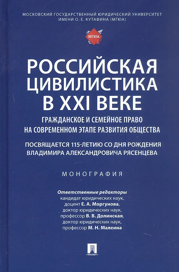 Российская цивилистика в XXI веке: гражданское и семейное право на современном этапе развития общества (посвящается 115-летию со дня рождения Владимира Александровича Рясенцева). Монография