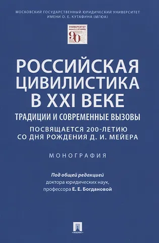 Монография подготовлена коллективом кафедры гражданского права Университета имени О. Е. Кутафина и других авторитетных российских ученых по итогам Всероссийской научно-практической конференции «Российская цивилистика в XXI веке: традиции и современные вызовы», посвященной 200-летию со дня рождения Д. И. Мейера, организованной 5 апреля 2019 г. в рамках VI Московского юридического форума.