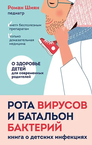 Книга «Рота вирусов и батальон бактерий. Книга о детских инфекциях» от Романа Шияна, настольная книга для родителей. Описаны основные заболевания, как заподозрить лечить с точки зрения доказательной медицины. Помощник в преодолении кризисных моментов. Красивое оформление, хороший шрифт.