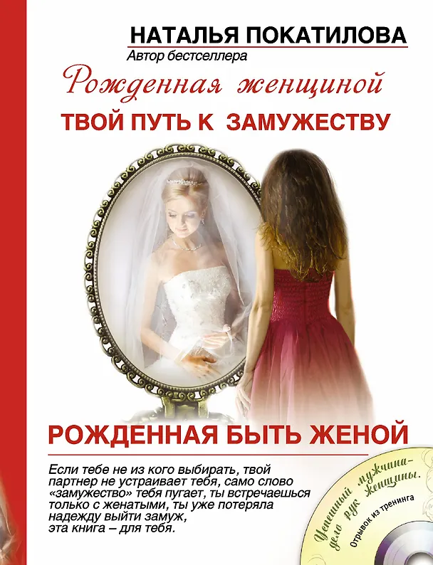 Рожденная быть женой Твой путь к замужеству (+CD) Наталья Покатилова ведет тренинги на тему Как выйти замуж. Из чего и родилась эта книга. Много тут есть интересных моментов. Причем и для тех, кто уже замужем. На диске отрывок из другой книги, о том, как сделать своего мужчину успешным. Полезная и интересная книга, легко читается.