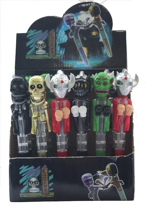 Ручка в виде монстра, при нажатии на рычажки, монстр боксирует и у него загораются глаза.