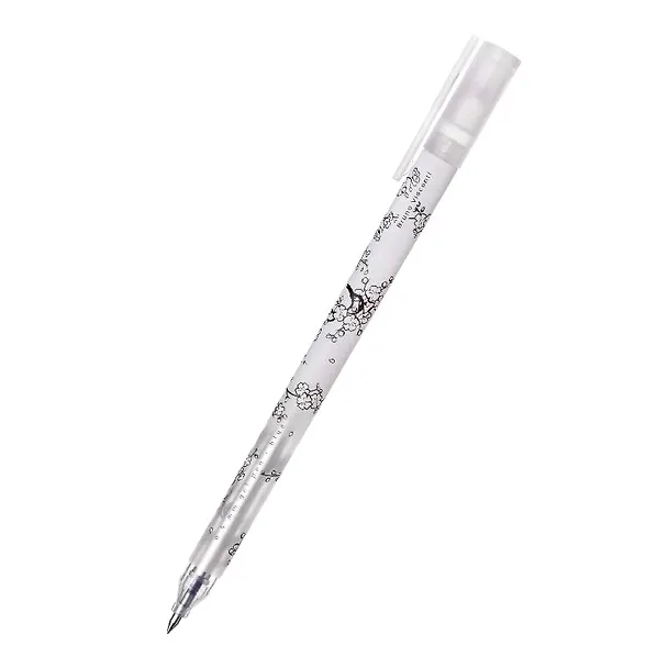 Очень качественная и стильная гелевая ручка, выполненная в японском стиле с приятным принтом в виде веточек сакуры. Ручка с черно-белым принтом смотрится аккуратно. Удобный дизайн, хорошо лежит в руке, не слишком толстый корпус. Так же чернила не мажутся по странице, быстро высыхают, не оставляя лишних следов на руке или бумаге. Стоит так же отметить весьма хорошую цену за такое отличное качество.