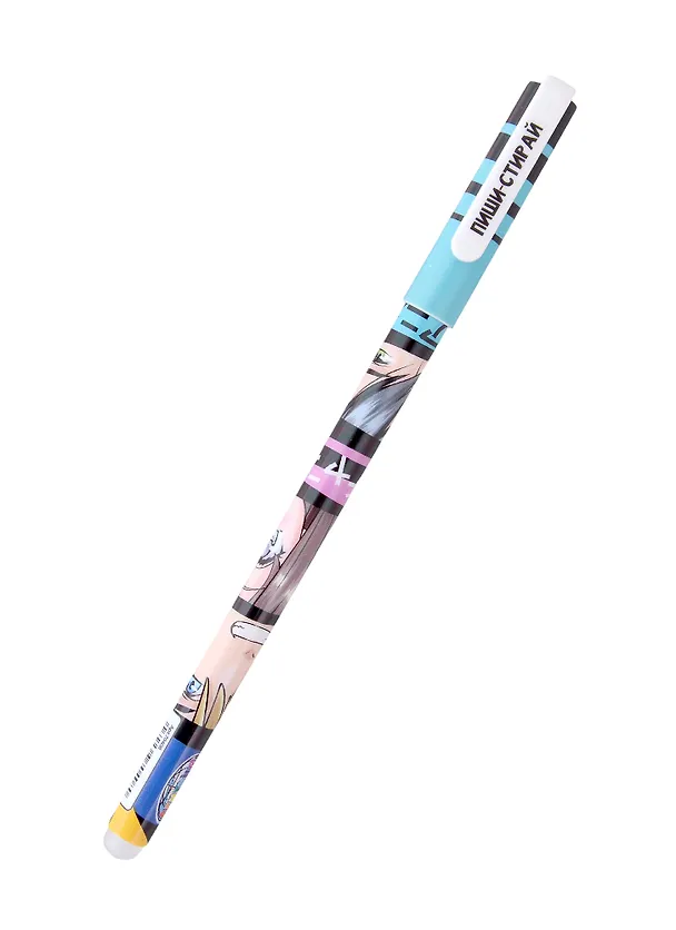 Здравствуйте. Ручка весьма удачная, яркая с изображением аниме, при этом пишет каллиграфически, стержень сменный синего цвета. Надписи можно стирать резинкой на колпачке. Не размазывается, грязи нет. Пластик корпуса качественный, не пахнет пластиком. Главное, что детям нравится и удобно. Плохого ничего не обнаружили. Есть несколько цветов. Качеством довольны