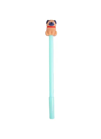 Купила гелевые ручки для ребенка и среди них эта, с мопсом. Её удобно держать в руке , не скользит хотя сделана из цветного пластика. Стержень хорошо пишет, линии тонкие, не мажет. Неудобно только, что чернила быстро заканчиваются, поэтому заказала сменные стержни разных цветов. Хорошо и то, что мопса можно перенести на другую гелевую ручку. Фигурка мопса выполнена качественно. Рекомендую.