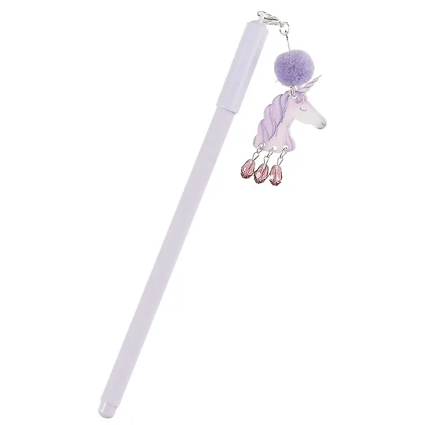 Гелевая ручка пишет синими чернилами, а брелок с милой лошадкой отстёгивается.