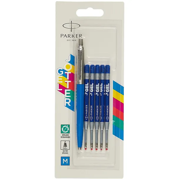 Подарите своему письму яркость и невероятную плавность! Этот комплект из гелевой ручки Parker Jotter и пяти синих стержней создан для тех, кто ценит комфорт и безупречное качество. Наслаждайтесь идеальным скольжением по бумаге без подтёков и прерывистых линий. Насыщенный синий цвет чернил от Parker остаётся чётким на любой поверхности, а автоматическая ручка с прочным корпусом надёжно лежит в руке. Это умный и практичный выбор для учёбы, работы, творчества.