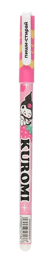Ручка гелевая Centrum "Kuromi" со стираемыми чернилами. Модель удобна в использовании, надежна и экономична, а еще дополнена приятным функционалом «Пиши – стирай». Мгновенная корректировка линий любой толщины без следов и деформации осуществляется с помощью ластика, расположенного на наконечнике. Ручка представлена в круглом пластиковом корпусе с колпачком. Высокое качество цветопередачи обеспечивает четкость нанесения рисунка, устойчивое к стиранию и деформации. Игольчатый наконечник диаметром 0,5 мм. создает ровные и не прерывистые линии. Цвет чернил – синий.