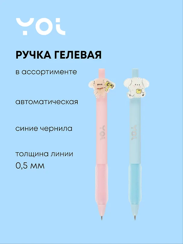 Ручка гелевая Yoi, "Сахарный мишка", синяя, в ассортименте