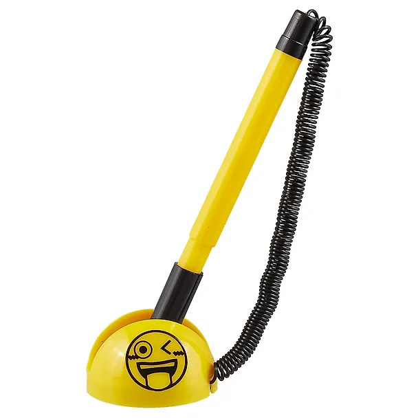 Сама ручка в подставочке накреняется в две стороны, пластик дешевый, но не плохой, за несколько месяцев эксплуатации (и даже редких падений) ничего не треснуло, не отломалось. Позитивная ручка со смайликами, отлично поднимает настроение на рабочем столе! Пружинка нежная, но прочная, упругость не теряет.
