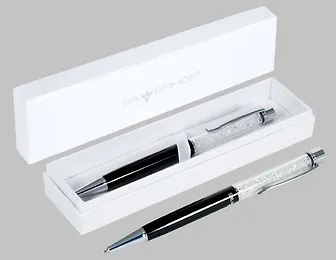 Ручка подарочная шариковая синяя "Glam Shine" черн.корпус, чешск.кристаллы, карт.футляр, Silwerhof