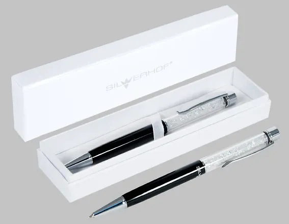 Ручка подарочная шариковая синяя "Glam Shine" черный корпус, чешские кристаллы, картонный футляр, Silwerhof