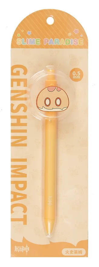Ручка Slime Series Pyro Slime 682647 по мотивам компьютерной игры "Genshin Impact". Пиро слаймы - слаймы, созданные из Пиро элемента. Их окрас состоит из двух цветов: желтый и оранжевый с более тёмным оттенком. Пиро слаймам свойственно менять цвет на более темный, то есть потухать, при взаимодействии с другими элементами. Имеет иммунитет к Пиро атакам персонажей. С высокой вероятностью взрываются при поражении.
