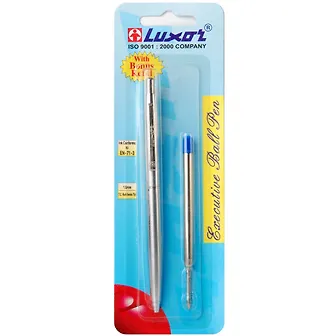 Ручка шариковая автоматическая синяя "Sterling" хром/стальной корп, запасной стержень, блистер, Luxor