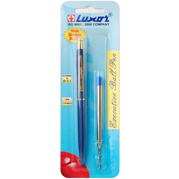 Ручка шариковая автоматическая синяя "Sterling" син/золот.корп, зап.стержень, блистер, Luxor