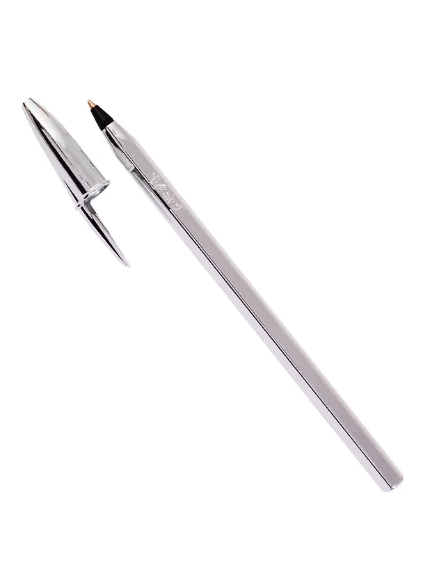 Ручка шариковая одноразовая. Серебрянный пластиковый корпус.Толщина линии - 0,32 мм. Шарик диаметром - 1,0 мм
