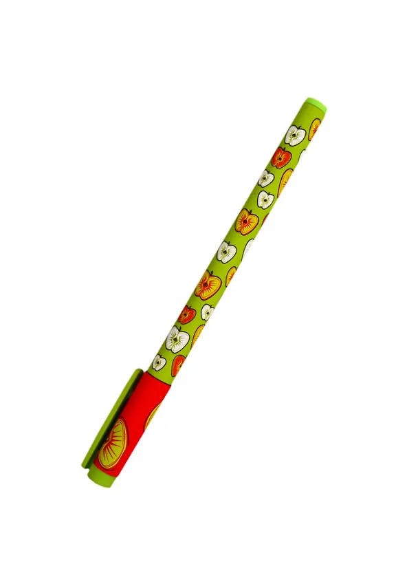 Ручка имеет яркий принт. Корпус ручки приятный на ощупь, напоминает покрытие софт тач. Ручка имеет прорезиненную вставку, благодаря которой ее удобнее держать в руке. Стержень тонкий 0.5 мм. Для меня писать ей быстро не особо удобно, предпочитаю стержни потолще. Чернила темно-синего цвета. Ручка пишет плавно, не заедая. Однако для левшей она точно не подойдет, так как чернила размазываются даже после высыхания.