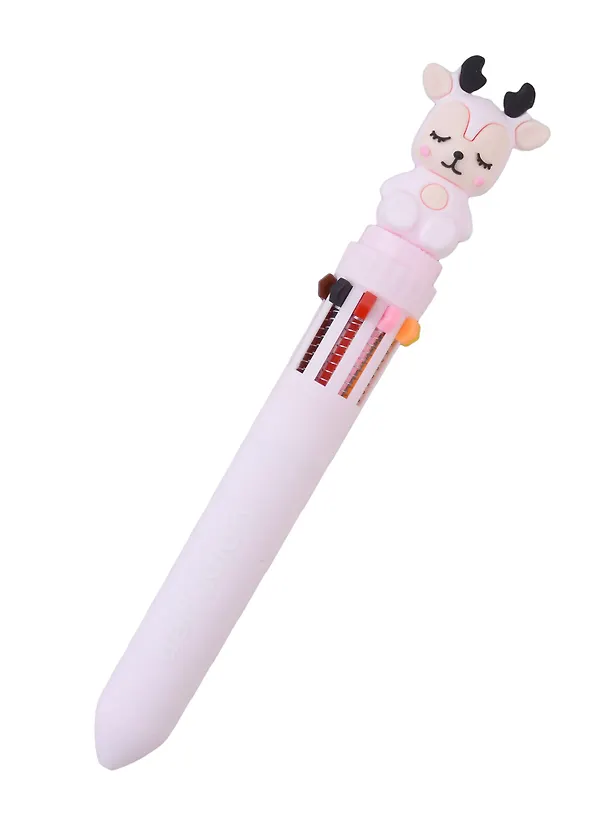 Милая ручка розового оттенка и с олененком. В наличии у стержней несколько цветов, что очень облегчает жизнь и позволяет продуктивно заниматься делами. Ручка хоть и толстая, в руке лежит удобно, стержни не протекают, а олененок добавляет радости и умиляет. Сделано качественно, механизм рабочий, пишет тонко и красиво.