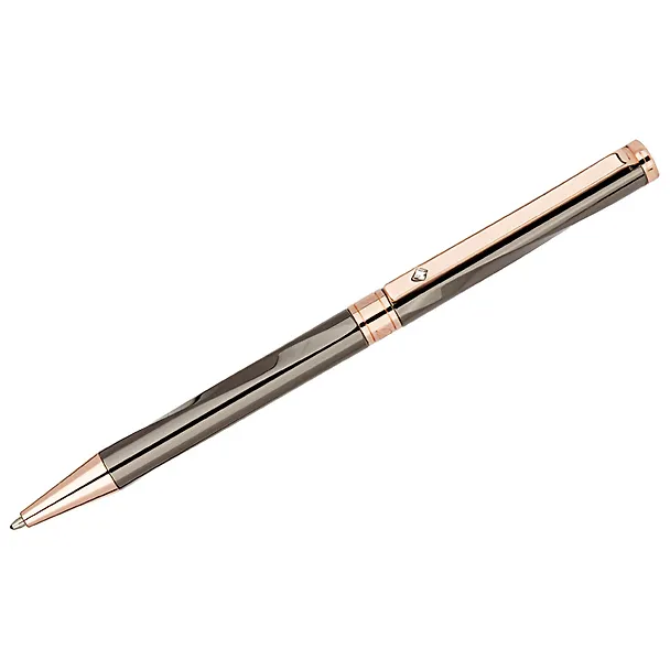 Delucci Inno – это необычная подарочная шариковая ручка с синими чернилами, которая впечатлит вас. Корпус цвета оружейного металла с золотыми вставками дополняет аккуратный клип с небольшим кристаллом в виде ромба. Ручка отличается оригинальным рифлением, которое создает красивые впадины. Клип сделан из нержавеющей стали, он позволяет фиксировать ручку на ежедневниках, блокнотах и карманах одежды. Delucci Inno оснащена поворотным механизмом, внутри которого расположен пишущий стержень диаметром 1 мм, который идеально подходит для быстрого стиля письма. Упакована в кожаный футляр.