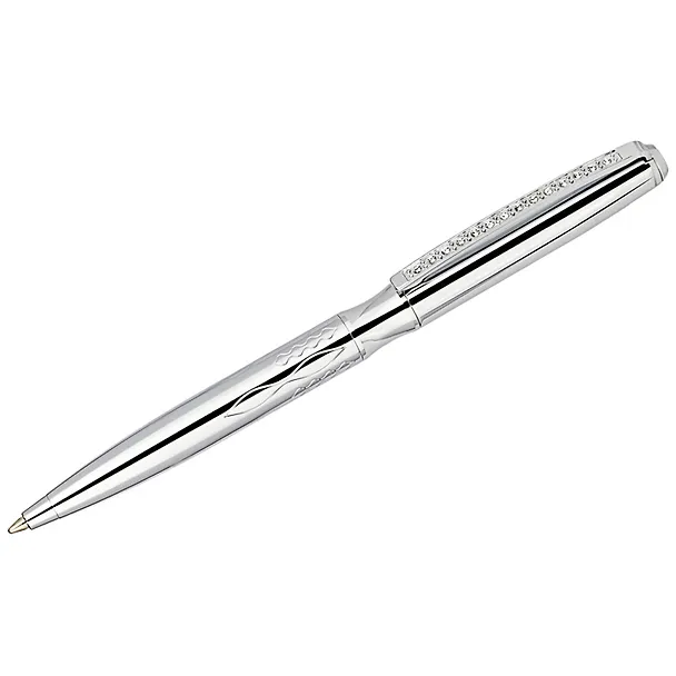 Delucci Mare – это роскошная подарочная шариковая ручка с синими чернилами, которую оценит любой человек. Серебристый корпус украшен изогнутыми линиями, тонкий и аккуратный клип инкрустирован кристаллами. В составе клипа – нержавеющая сталь, он также позволит использовать ручку с комфортом: закреплять ее в удобном месте. Delucci Mare оснащена поворотным механизмом, внутри которого расположен пишущий стержень диаметром 1 мм, который идеально подходит для быстрого стиля письма. Упакована в футляр с откидной крышкой.