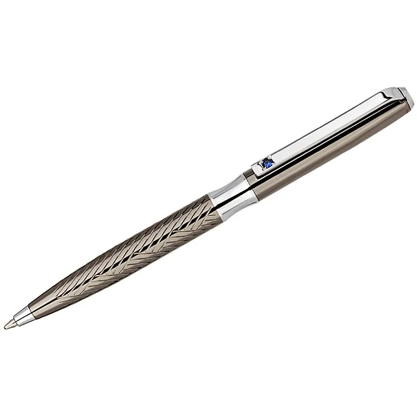 Delucci Taglia – это изысканная подарочная шариковая ручка с синими чернилами, которая подойдёт в качестве подарка неординарным личностям. Классический дизайн с утонченным клипом дополняет инкрустированный в него синий кристалл. Клип сделан из нержавеющей стали, он позволяет фиксировать ручку на ежедневниках, блокнотах и карманах одежды. Delucci Taglia оснащена поворотным механизмом, внутри которого расположен пишущий стержень диаметром 1 мм, который идеально подходит для быстрого стиля письма. Упакована в кожаный футляр.