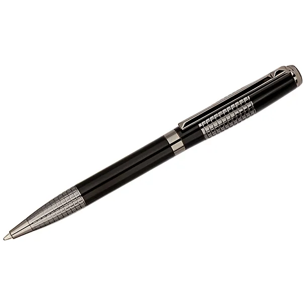 Delucci Vivo – это необычная подарочная шариковая ручка с синими чернилами, которая подойдёт в качестве подарка коллеге или другу. Оригинальное опоясывающая гравировка неизменно привлекает внимание к класическому сочетанию серебрянного и черного цвета корпуса. Клип сделан из нержавеющей стали, он позволяет фиксировать ручку на ежедневниках, блокнотах и карманах одежды. Delucci Vivo оснащена поворотным механизмом, внутри которого расположен пишущий стержень диаметром 1 мм, который идеально подходит для быстрого стиля письма. Упакована в кожаный футляр.