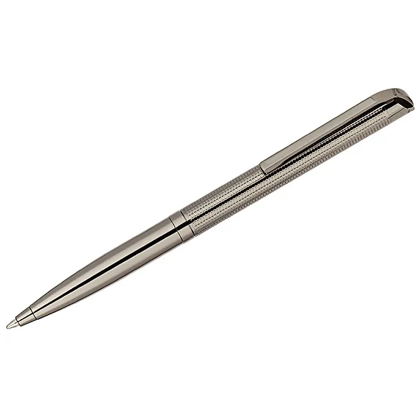 Delucci Volare – это изысканная подарочная шариковая ручка с синими чернилами, которая удовлетворит даже самые высокие запросы. Её корпус цвета оружейного металла дополняет гравировка в виде клеточки. Клип сделан из нержавеющей стали, он позволяет фиксировать ручку на ежедневниках, блокнотах и карманах одежды. Delucci Volare оснащена поворотным механизмом, внутри которого расположен пишущий стержень диаметром 1 мм, который идеально подходит для быстрого стиля письма. Упакована в кожаный футляр.