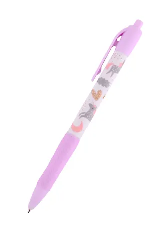 Товар пришёл в хорошем состоянии, упакованный в пупырчатую плёнку вместе с другими двумя ручками, которые я покупала наряду с этой. Материал, из которого сделана ручка, тактильно приятный, в руке она держится удобно. Пишет синей шариковой пастой, имеет приятный глазу сиреневый цвет, а также чёткий, яркий принт с очаровательнейшими единорогами. При желании можно менять пасту. К покупке рекомендую. :)