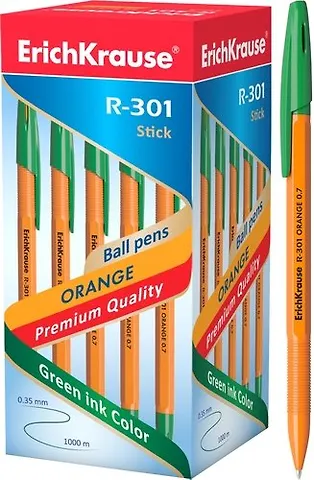 Ручка шариковая Erich Krause, R-301 Orange, зеленая 0,7 мм
