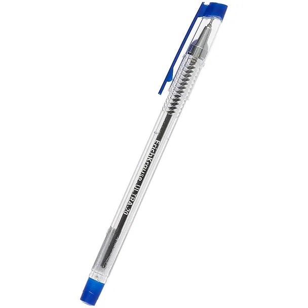 Обычная ручка в красивом прозрачном корпусе, который приятно держать в руках и писать ими конспекты. Даже удивило, что после ручки не устает рука, как это обычно случается. Цвет чернил у ручки синий, насыщенный и яркий, пишет ровно и чётко, не оставляет пробелов. По всей тетради не мажется, что тоже отдельный плюс