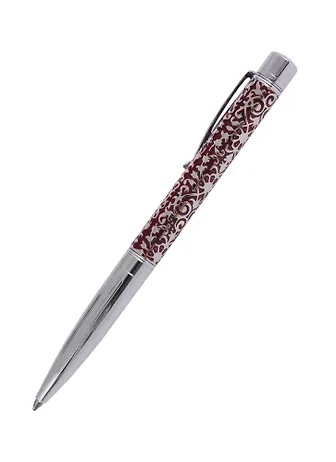 Подарочная шариковая ручка Bellaria с серебряной отделкой имеет красивые объемные рисунки с красными вставками. Ручка снабжена поворотным механизмом подачи стержня. Сменный стержень- тип Parker, 98 мм.