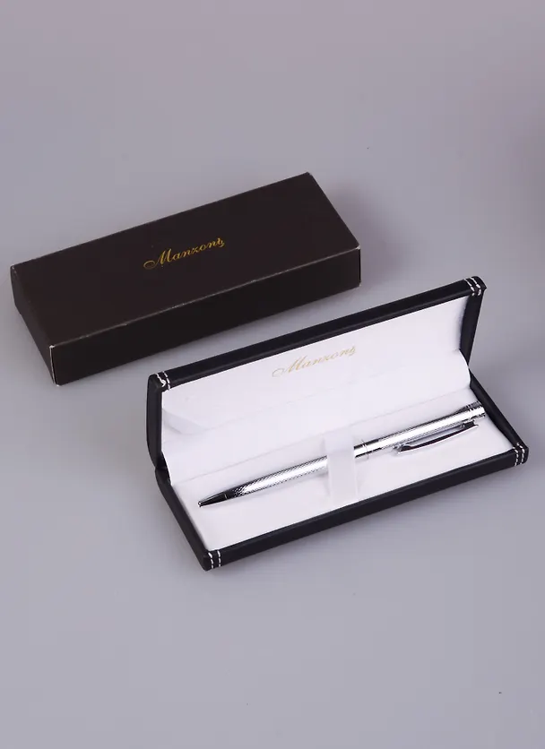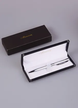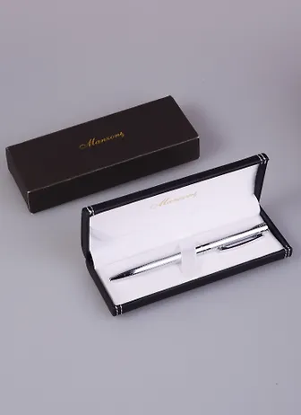 Ручка подарочная шариковая TREVISO .Серебряный корпус, кожзам футляр .Manzoni