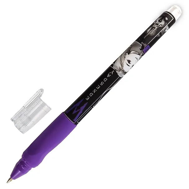 Ручка шариковая Centrum Аниме "Вэнсдэй" будет хорошо смотреться в пенале и на рабочем столе. Привлекательный внешний дизайн, еще не все положительные характеристики. Привлекающий внимание, забавный аксессуар непременно поднимет настроение самому себе и окружающим. Шариковая ручка хорошо справляется со своими основными задачами, обладая всеми необходимыми характеристиками для комфортного письма. Модель в утолщенном пластиковом корпусе с покрытием Soft Touch, предотвращающим скольжение дополнена эргономичной резиновой накладкой. Металлический наконечник диаметром 0,7 мм. создает четкие, непрерывистые линии, обеспечивая плавное и мягкое письмо. Благодаря оптимальной консистенции, чернила равном