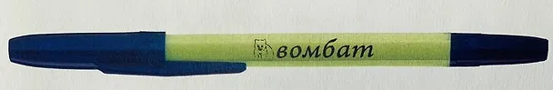 Ручка шариковая Вомбат , коллекция «Fresh», корпус салатовый, цвет чернил синий - синий колпачок и синяя заглушка -колпачок и заглушка изготовлены из ПНД , цвет чернил синий, на корпусе ручки логотип печать «Вомбат»- цвет синий, корпус изготовлен из полистирола, цвет корпуса салатовый, Стержень 152 мм, металлизированный наконечник , длина письма 1800 метров, толщина - 1 мм, цвет чернил - синий. Упаковка: по 50 шт., в коробке по 600 шт.