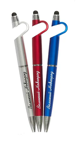 Авторучка с функцией стилуса. Стержень синий стандартный для обычных авторучек, можно менять. Подушка стилуса плотная и мягкая - не попортит дисплей. Можно не только кликать по экрану смартфона или планшета, но и делать пометки в соответствующих текстовых программах, поддерживающих функцию написания символов стилусом. Функция подставки сделана в виде изгиба на торце, чтобы оперативно зафиксировать смартфон. Ширина пространства позволяет установить смартфон любой толщины. Сувенирный дизайн может послужить недорогим презентом.
