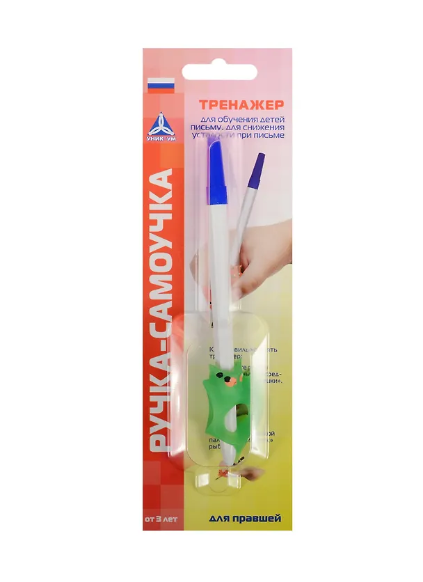 Ручка - самоучка это уникальный тренажер для обучения детей письму и исправления неверной техники письма для детей и взрослых. Тренажер позволяет в игровой форме, без усилий выработать правильную постановку пальцев при обучении ребенка рисованию и технике письма - ручку (карандаш) держать легко и удобно.Тренажер позволяет выработать абсолютно верный наклон ручки/карандаша при письме, верное расположение пальцев и решить основные проблемы: 1. чистописание - ребенок пишет красиво и разборчиво 2. скорость письма - ребенок пишет быстро 3. усталось руки при письме - рука не устает при длительном письме. Рекомендовано для обучения детей с 2,5 лет на карандаше, с 5 лет - на ручке. Изготовлено из те