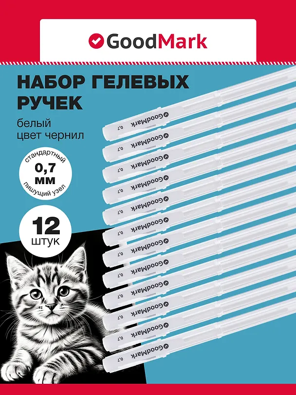 Ручки гелевые 12шт с белыми чернилами 0,7мм, GoodMark