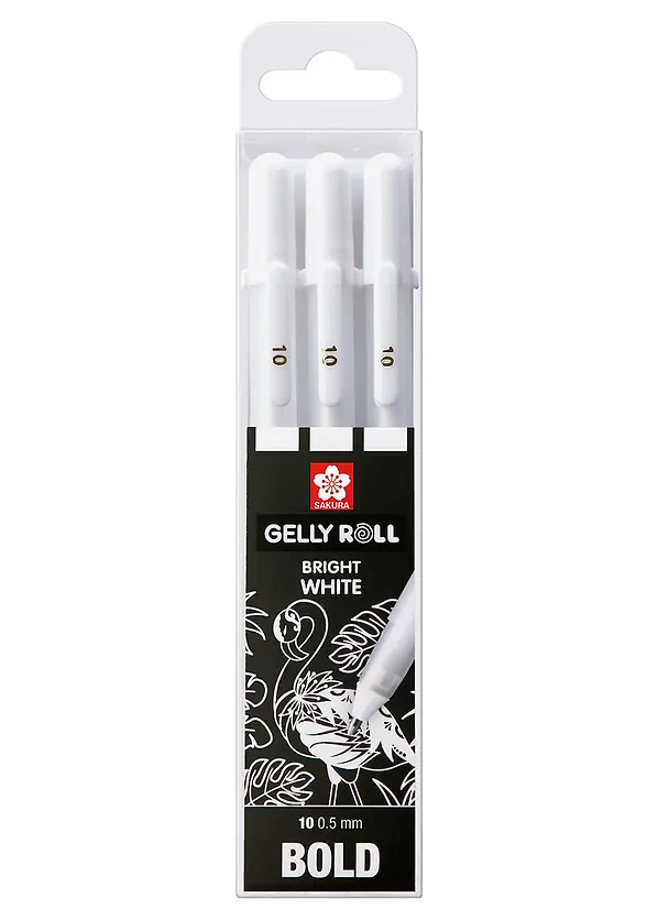 - В наборе 3 белые гелевые ручки Sakura Gelly Roll 10 (пишущий узел 0.5мм)