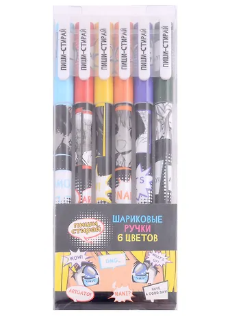 Тонкий игольчатый стержень и толщина письма 0,5 мм подходят для мелкого почерка и прорисовки деталей. Чернила на водной основе ложатся ровно и быстро высыхают. В наборе 6 ручек в пластиковой упаковке — практичный вариант для пенала и приятный подарок поклоннику манги и аниме.