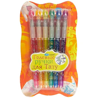 Набор гелевых ручек для тату предназначен для рисования по телу и декоративно-оформительских работ. Чернила безопасны для кожи, легко смываются водой. В набор входит 6 ручек и трафареты.