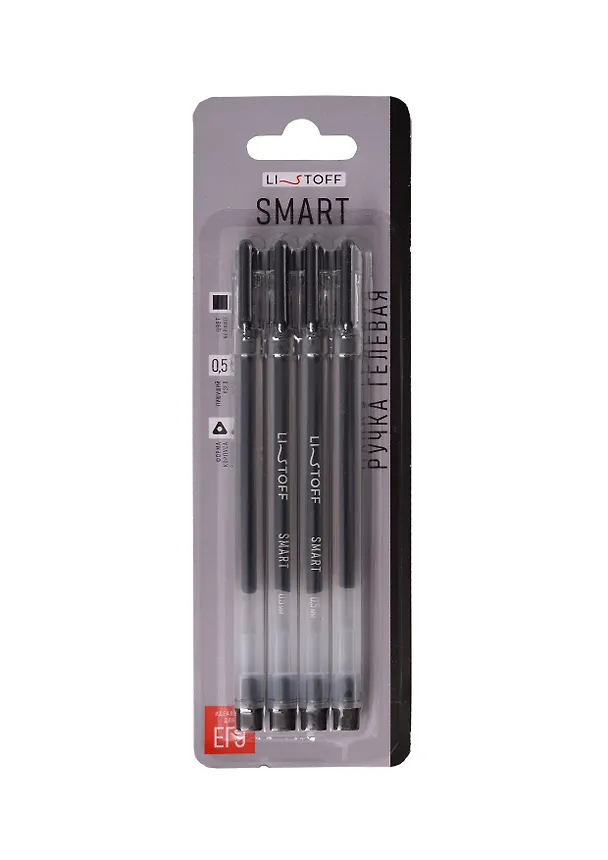 Ручки гелевые Listoff, Smart, черные 0,5 мм 4 штуки