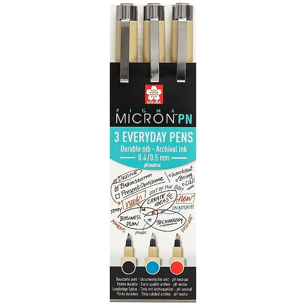 - Чернила в ручках Sakura Pigma Micron PN такие же, как и в классических ручках Pigma Micron: светостойкие архивные чернила на основе пигментов, устойчивые к воде, химическому воздействию, pH нейтральные, быстросохнущие
