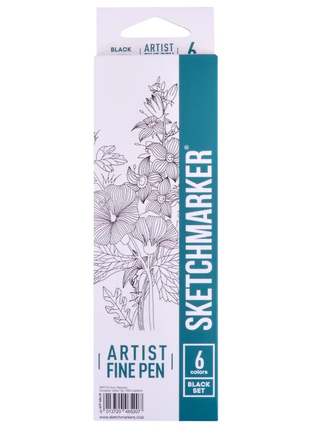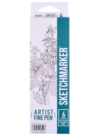 Ручки капиллярные 06цв Artist fine pen Black, к/к, Sketchmarker