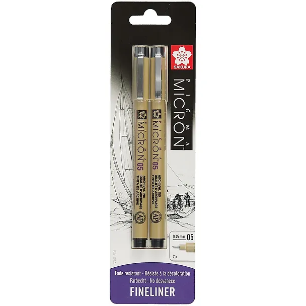 Ручки капиллярные черные 02шт "Pigma Micron" 0.45мм